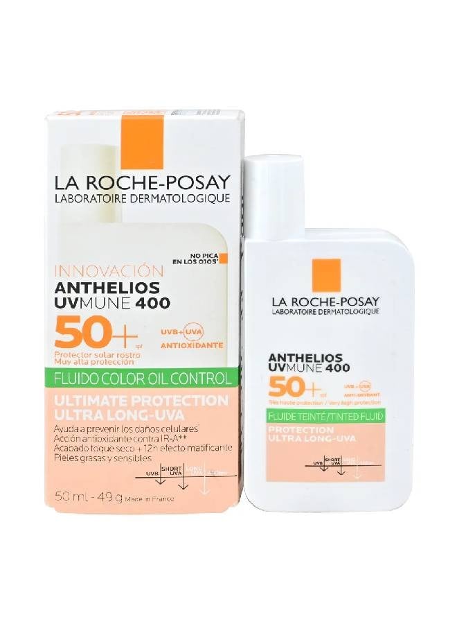 واقي شمسي للوجه ذو حماية عالية جدًا بعامل حماية من الشمس SPF50+ في سائل غير مرئي وخفيف مطفي مصمم خصيصًا للبشرة المختلطة إلى الدهنية، بما في ذلك تلك المعرضة للعيوب الملونة.